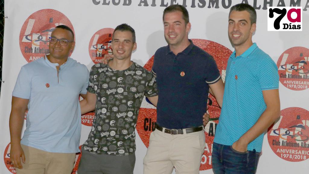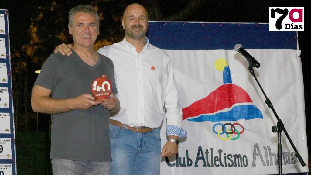 "Han pasado 40 años y para mí han sido un suspiro". Sobre un escenario montado en el recinto de la piscinas de verano, Javier Aledo, presidente del Club Atletismo Alhama, abrió el turno de intervenciones que se sucedieron este sábado para conmemorar las cuatro décadas de la entidad deportiva en activo más antigua del municipio.