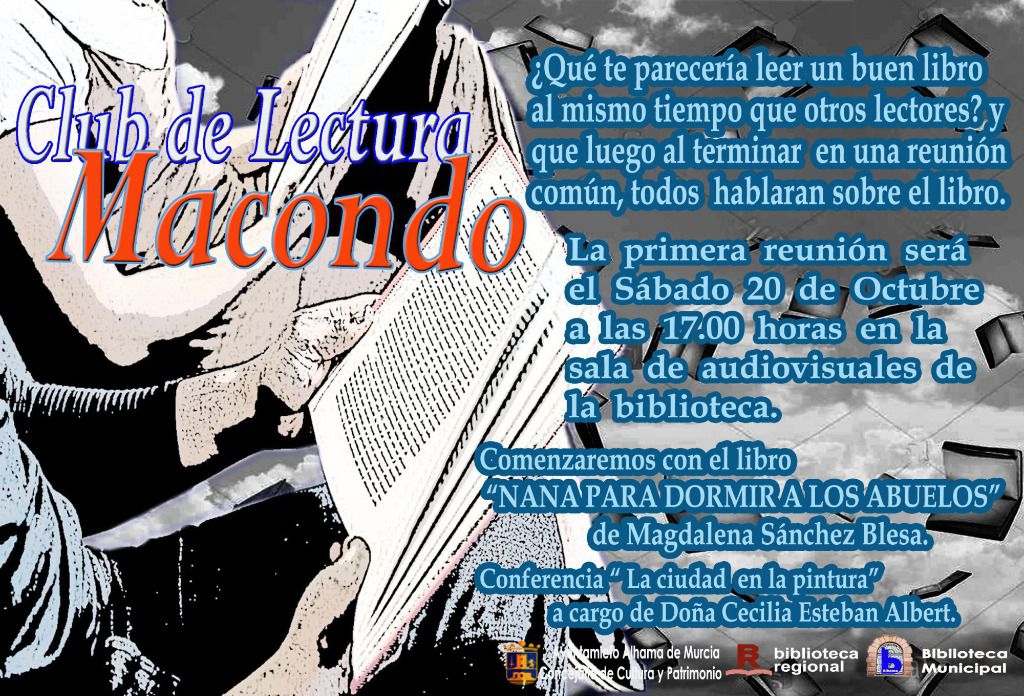 La primera reunión del Club de Lectura Macondo se llevará a cabo este sábado a las 17:00 horas en la sala de audiovisuales de la Biblioteca. En ese momento, día y lugar están convocado todos los aficionados a la lectura.
