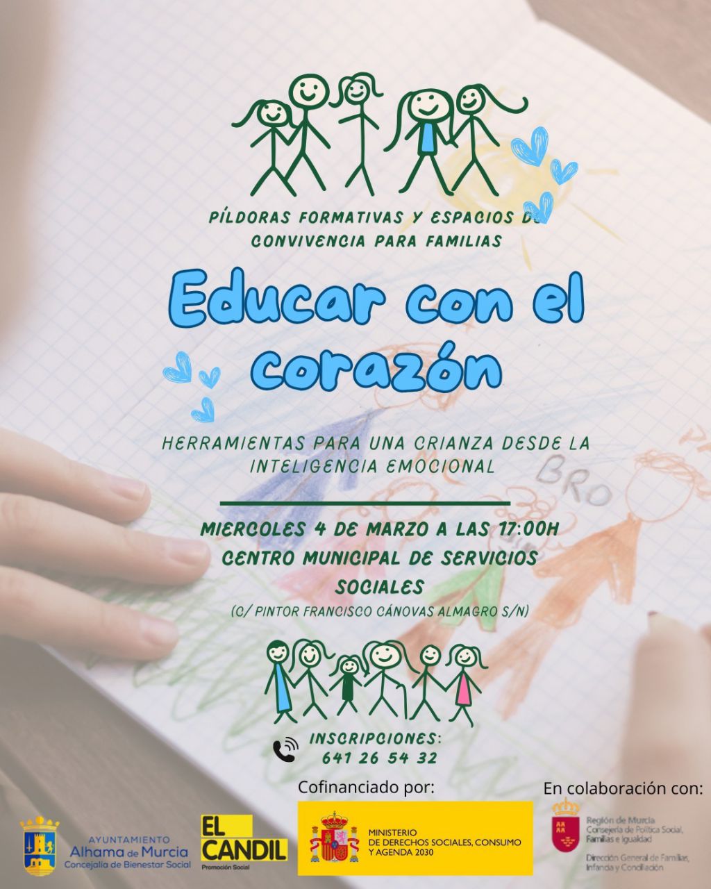 Las píldoras formativas de la Escuela de Familias están financiadas por el Ayuntamiento de Alhama de Murcia, en colaboración con la Consejería de Política Social, Familias e Igualdad de la Comunidad Autónoma de la Región de Murcia, y cofinanciadas entre ésta y el Ministerio de Derechos Sociales, Consumo y Agenda 2030.