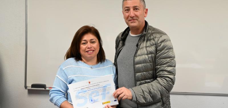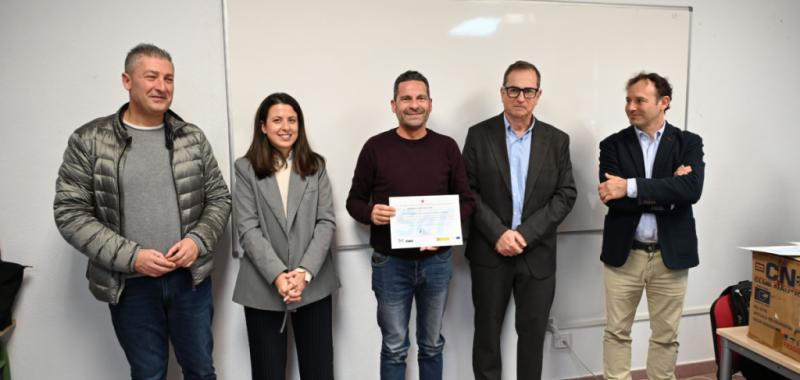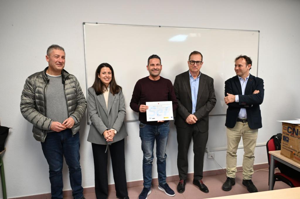 Al acto de clausura han asistido el director del Centro de Referencia Nacional de Formación Profesional en Química, Juan Antonio Madrid Mendoza; el jefe de estudios del CRNQ, Vicente Garberi; la directora de la oficina del SEF en Alhama, María Vicente; la ingeniera civil,Ángela Salazar y el director de la empresa Kinsy, Pablo García; junto al concejal de Desarrollo Local, Felipe García Provencio.