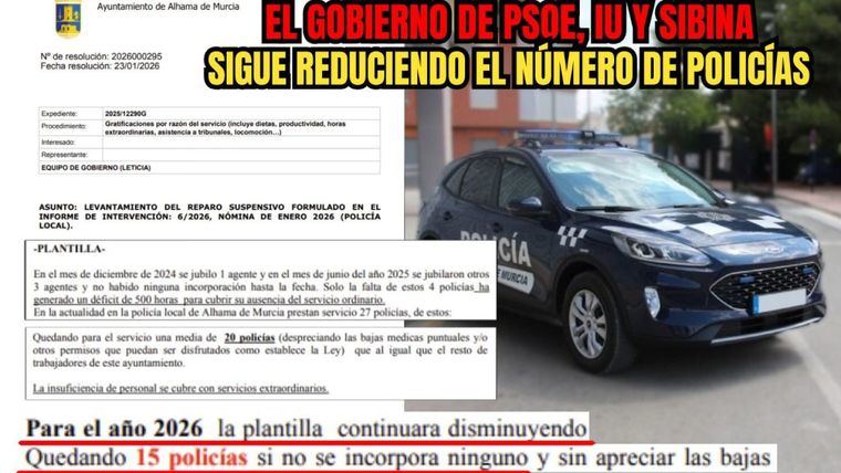 Situación actual con PSOE, IU Y Sibina (2026): El documento oficial del Ayuntamiento revela una cifra alarmante: la plantilla se ha visto reducida a tan sólo 15 agentes.