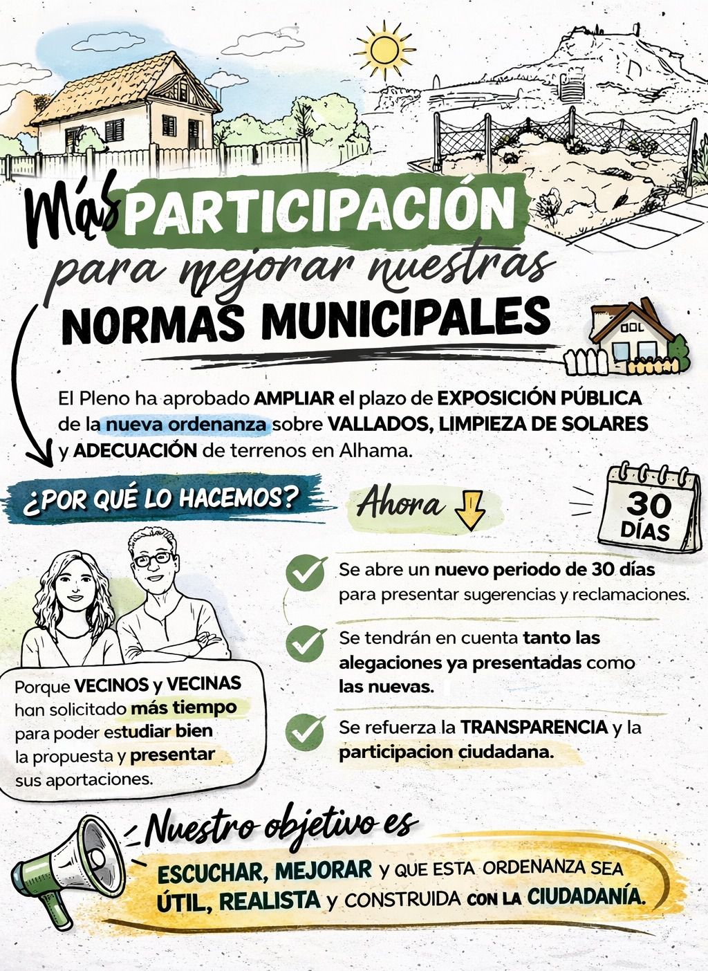 El Pleno ha aprobado ampliar el plazo de exposición pública de la nueva ordenanza sobre vallados, limpieza de solares y adecuación de terrenos en Alhama.