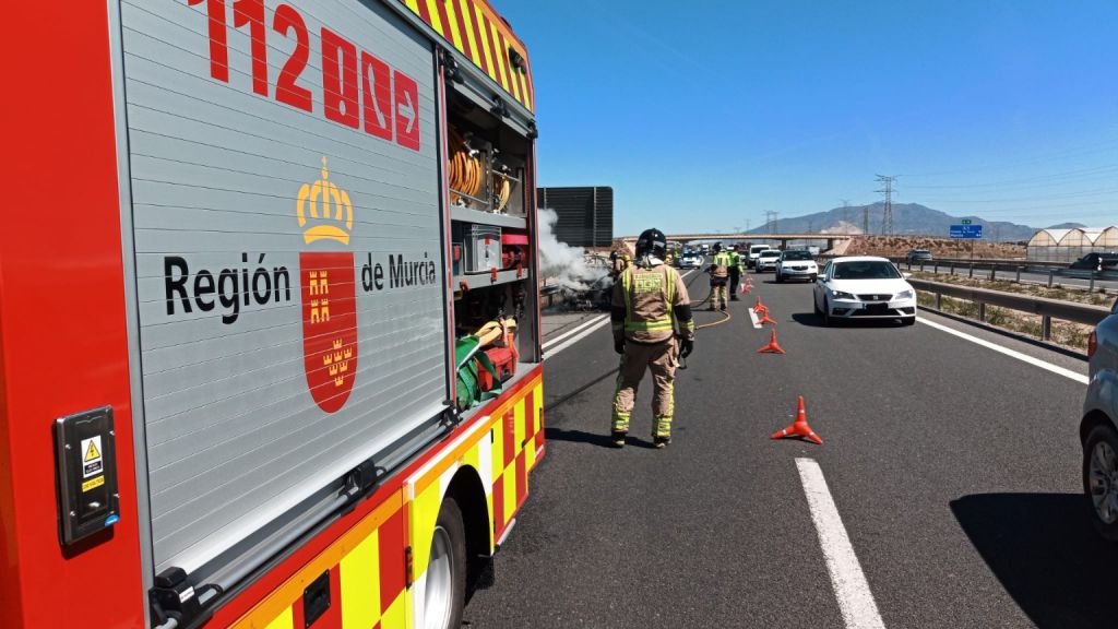 A las 12:30 horas, varias llamadas al 1-1-2 alertaron sobre las llamas en un vehículo en la A-7, en dirección Andalucía, en el término municipal de Totana.